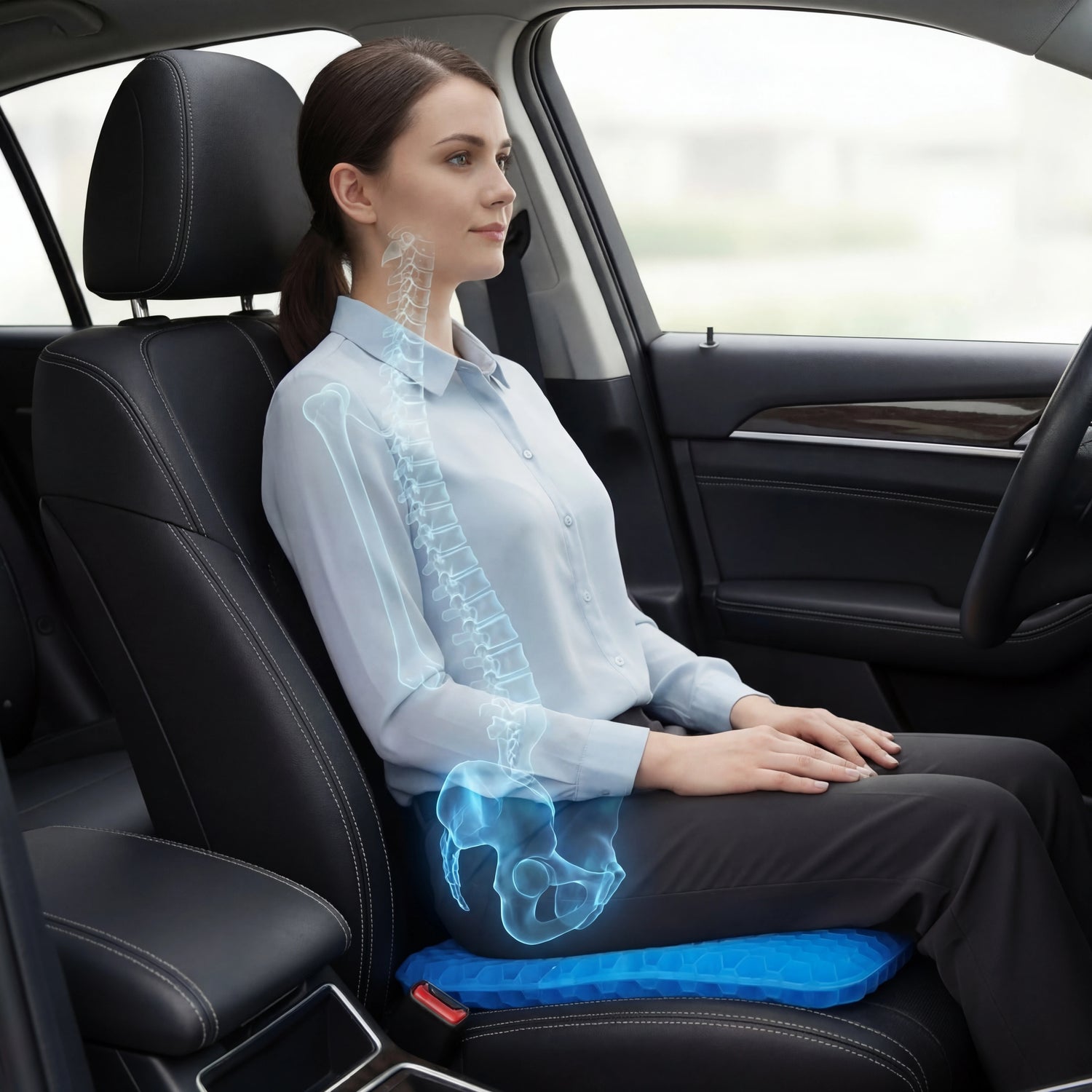 Les sièges de voiture sont conçus pour durer, pas pour votre corps. Leur forme en seau force vos hanches à s'affaisser et vos cuisses à s'enfoncer dans le siège, coupant la circulation et laissant vos jambes agitées. Avec le temps, cet effondrement postural irrite vos nerfs et vous laisse endolori longtemps après avoir coupé le moteur.