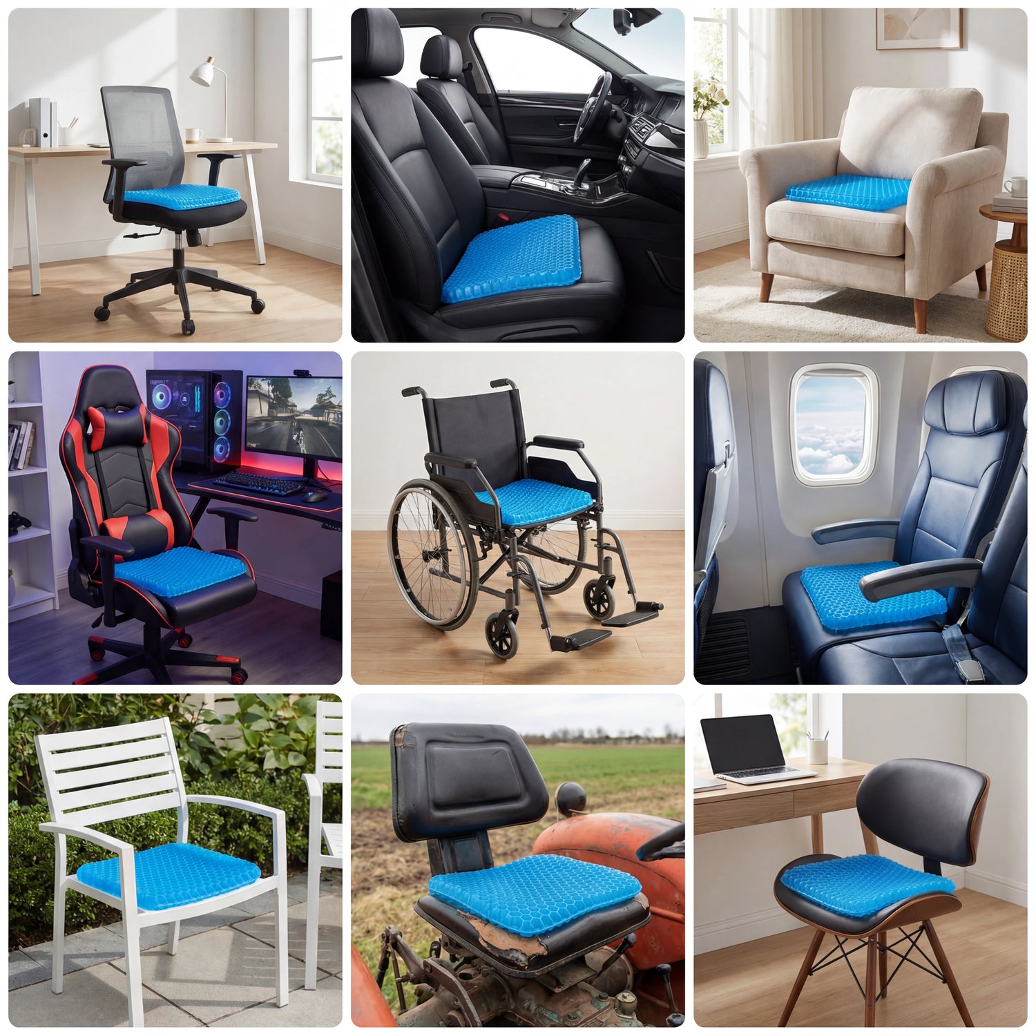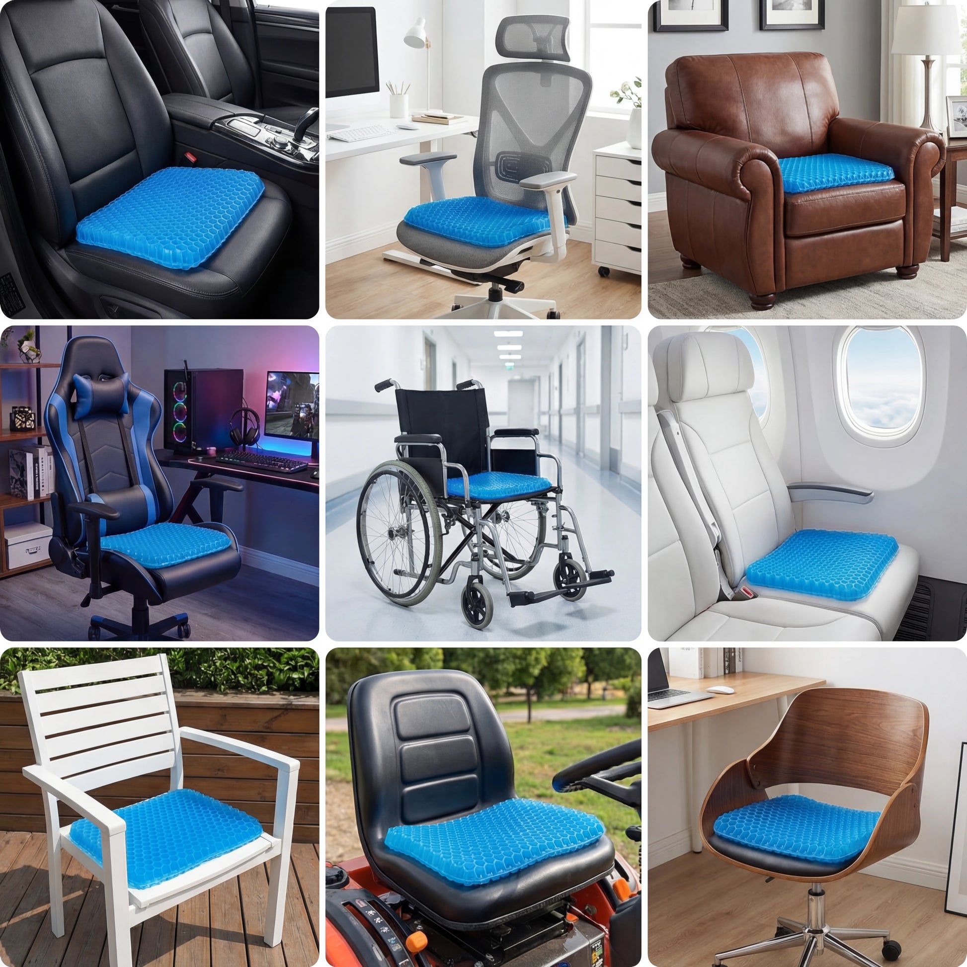 ASSŌRA s'adapte à chaque siège que vous utilisez. La base stable et la face inférieure antidérapante le maintiennent en place sur les sièges auto, chaises de bureau, chaises de salle à manger et fauteuils roulants pour un confort quotidien. La technologie gel épouse votre corps sans perdre sa forme, tandis que la housse amovible lavable en machine le garde frais au quotidien.